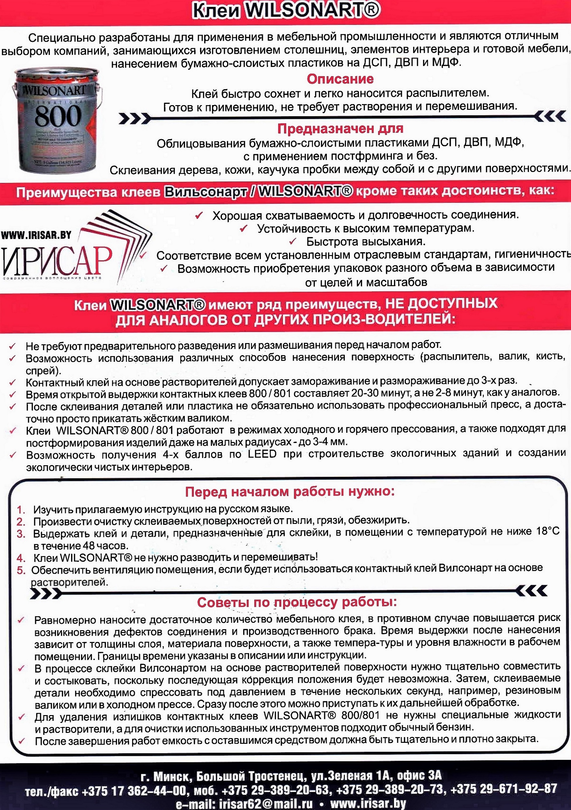 Контактный клей WILSONART 800, 801 и 500 - ПРОДАЖА ПРИОСТАНОВЛЕНА