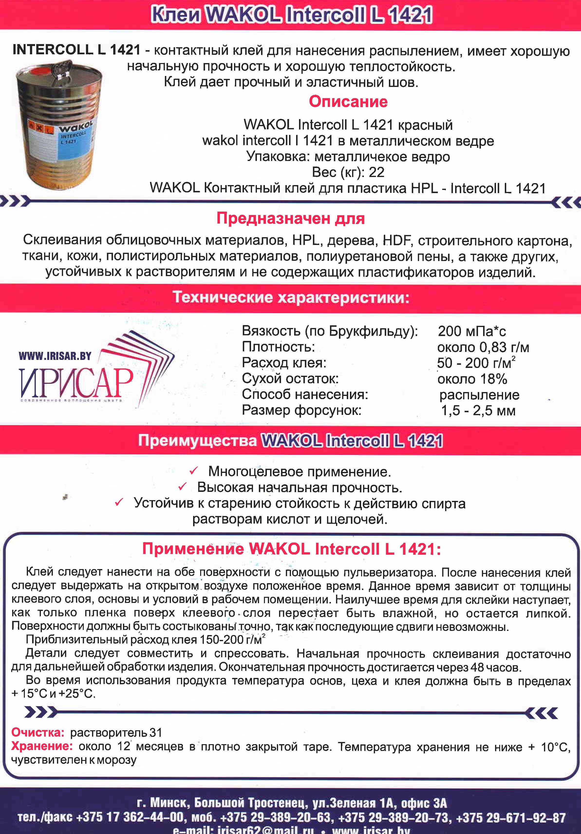 Контактный клей Intercoll WAKOL L 1421 (22кг, 9кг, 5кг)