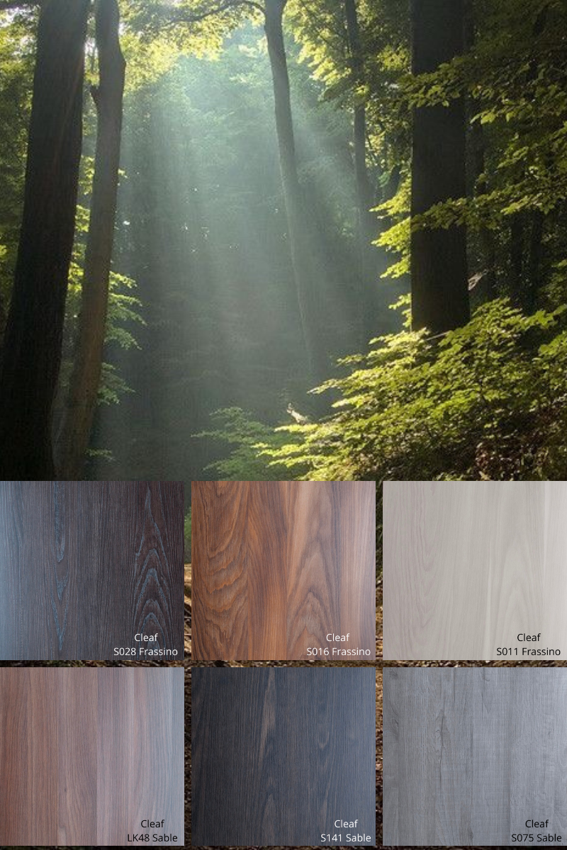 Богатство оттенков и текстур «Древесной» коллекции Cleaf позволит создать идеальный «лесной» интерьер.