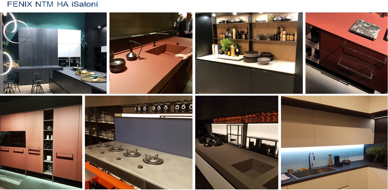 Среди цветовых решений самыми популярными являются следующие: серый (от светло-серебряного до глубокого, угольного оттенков), терракотовый, чёрно-белые классические сочетания, теплые спокойные оттенки от кофе с молоком до какао, нежные пудровые будуарные цвета и так называемые пыльные оттенки зеленого, синего, розового. Из ярких контрастных – оптимистичный жёлтый и бодрящий лаймовый. Тем актуальнее выглядят новинки пластиков Arpa и Fenix, выпущенных в 2018 году.