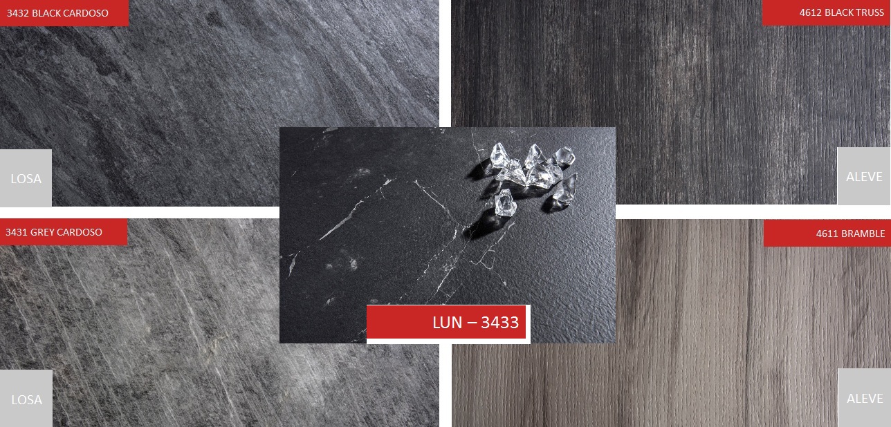 Что же касается итальянских пластиков Arpa, они выпустили 5 новых оттенков с натуральными текстурами. Поверхности материала воспринимается и визуально, и тактильно, как благородный природный материал. Цвета – от светло-серого (3431 grey Cardoso) до глубокого серого (4612 black truss).