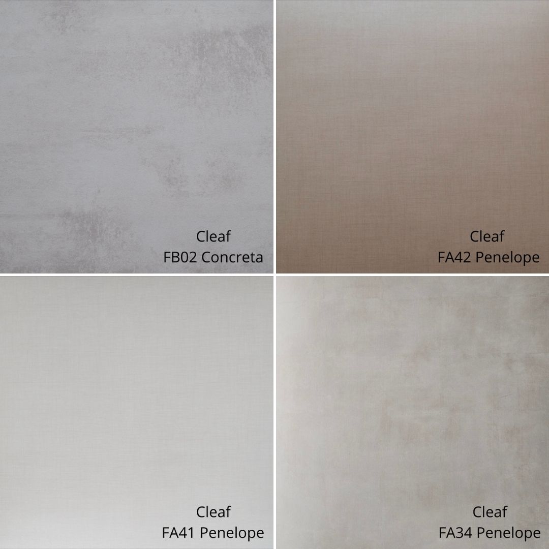 Пластики Cleaf обладают прочностью, долговечностью, устойчивостью к истиранию и выгоранию, соответствуют всем международным экологическим нормам. Современные текстуры hpl пластика имитируют как ценные древесные породы - ясеня (покрытие Frassino), ореха (покрытие Poro noce), дуба, сосны и павлонии, так и зернистую текстуру натурального льна (покрытие Penelope), побелки (покрытие Concreta). Текстура Sable обладает эффектом обработанной вручную древесины, воспевает красоту природы и натурального массива. К поверхностям подобраны деликатные приглушенные цвета пластика, которые идеально впишутся, как в яркие, так и в сдержанные интерьеры.
